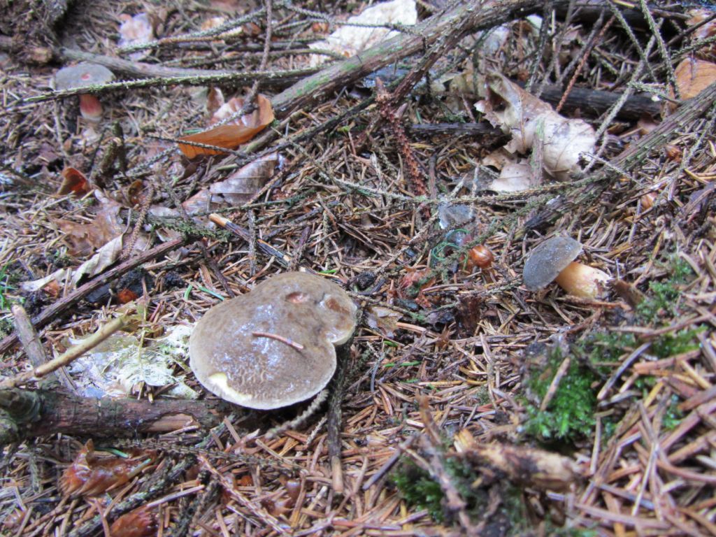 Anfangs noch Wolkig, passend zum Strubbelkopfröhrling. Im Hintergrund ein paar Schwefelköpfe ohne genauere Bestimmung: