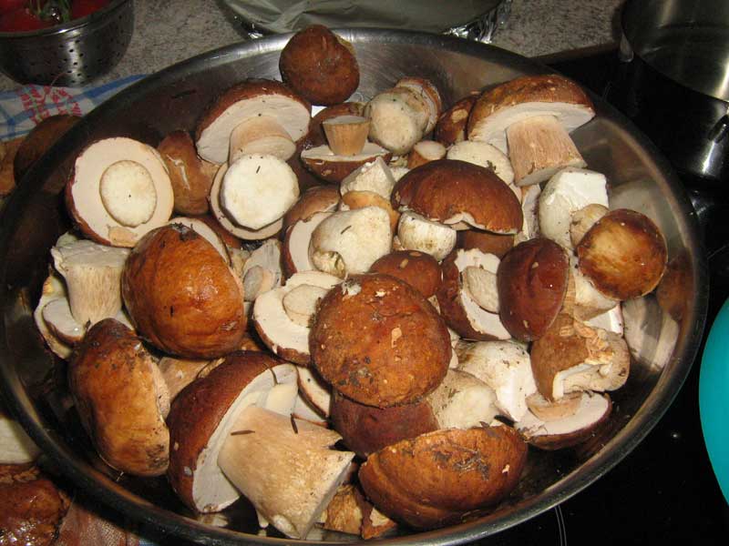 Solch Pilzschwemme habe ich selten erlebt. Am Samstag und Sonntag, trotz Regen machte ich mich wieder auf um meine bekannten Plätze mal dieses Jahr das erste mal zu überprüfen. Was ich vorfand war gigantisch,- eine wahre Steinpilzschwemme. Insgesamt ergab es 4,5 (gechnitten) Kilo die unseren Eigenbedarf erst mal deckt für ne Weile. Leider - wegen Regen - habe ich die Kamera nur selten angemacht und erst zu Hause fotografiert.