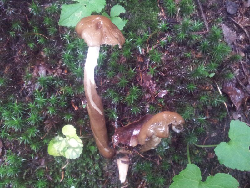 Stand an altem Buchenstumpf, ca. 700m Seehöhe auf Kalk, südl. Oberösterreich. Stiel ca. 15cm lang und knapp 1cm dick. Hut ca. 3cm breit, graubraun wie Stieloberfläche, dünnfleischig. Hut- und Stielfleisch sowie "Doppel"lamellen weiß. Huthaut nicht abziehbar, Stielfleisch faserig. Stiel drehend gewachsen, nicht hohl. Geruch leicht pilzig, Geschmack unbedeutend. Basis würde ich als "wurzelnd" beschreiben. Keine Verfärbung im Schnitt erkennbar. Hatte im Wald leider nur Handy dabei...