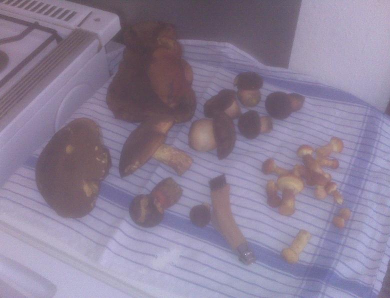 Jedenfalls kämpft mein Magen jetzt gerade mit einer nahezu apokalyptischen Eiweißflut. Ich habe nur den Gigantenpilz direkt gegessen, die beiden "mittelgroßen" Hexen werden getrocknet, die kleineren und die Goldröhrlinge sind eingekocht.