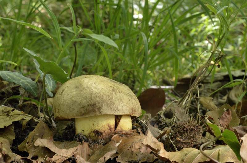 Wachsen Fahle Röhrlinge bei Buchen und Eichen? Ich hatte da neulich ein paar Exemplare im Buchen - Eichenwald, die den von dir gezeigten jetzt ziemlich ähnlich sahen. Allerdings konnte ich keinerlei Blauverfärbung feststellen. So habe ich etwas in die Richtung Xerocomellus: Eichen - Filzröhrling vermutet. Eine Geschmacksprobe habe ich dummerweise nicht genommen.