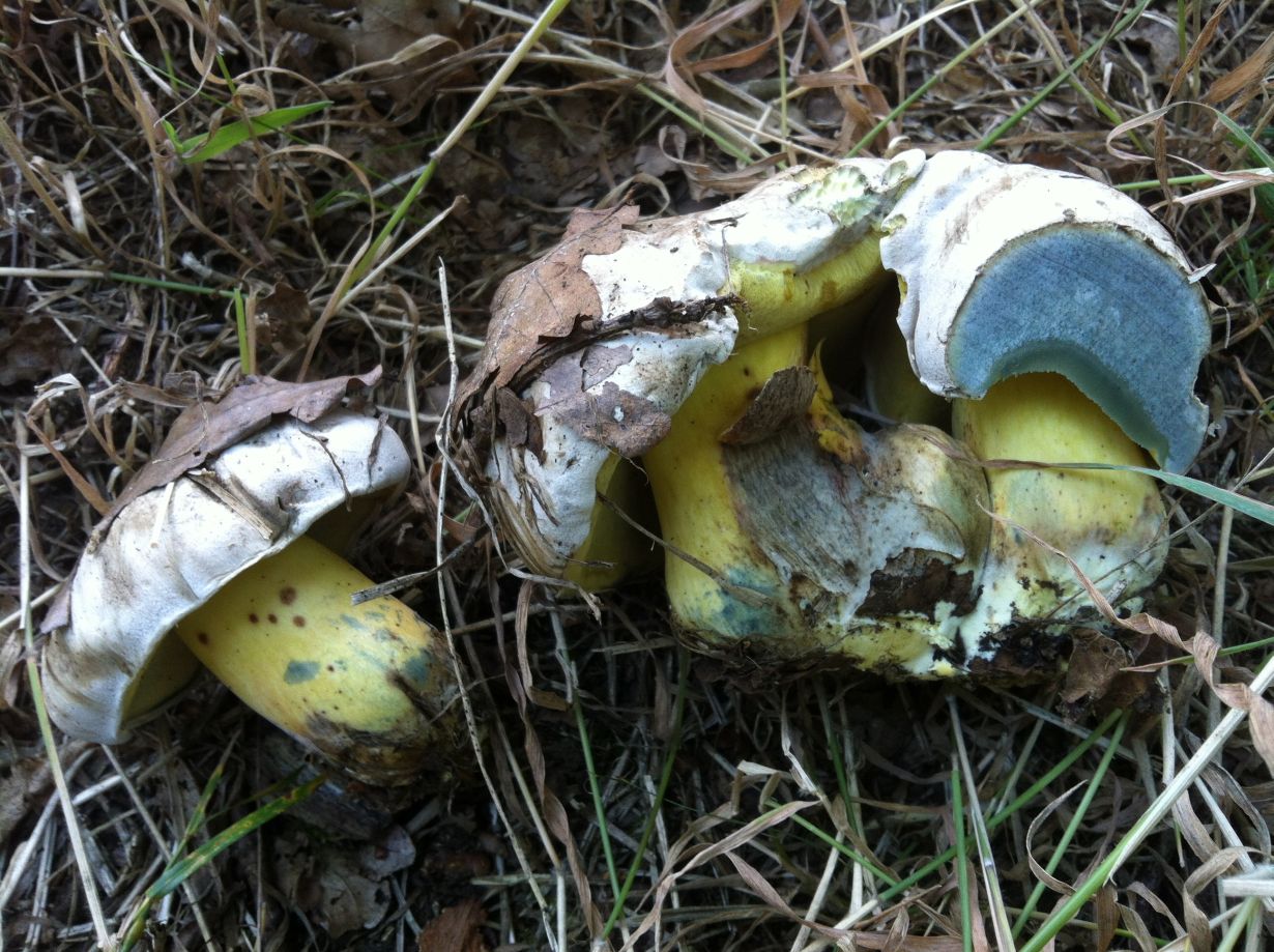 alle drei waren richtig gelb. auch der junge. die poren waren sehr fein wie ein polster. und auf druck blauten sie nicht sondern liefen nach einiger zeit eher braunrot an.