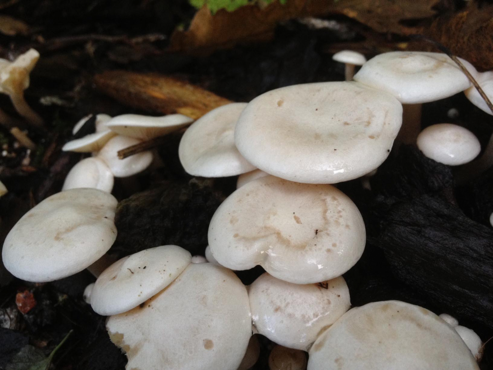Der Pilz tritt in einem Bereich von ca. 2,5 Meter x 1 Meter auf und es befinden sich ca. 100 Stück dort. Der Boden wird wegen der Farne/Hainbuchen künstlich bewässert. Ca. 8 cm. Rindenmulch.