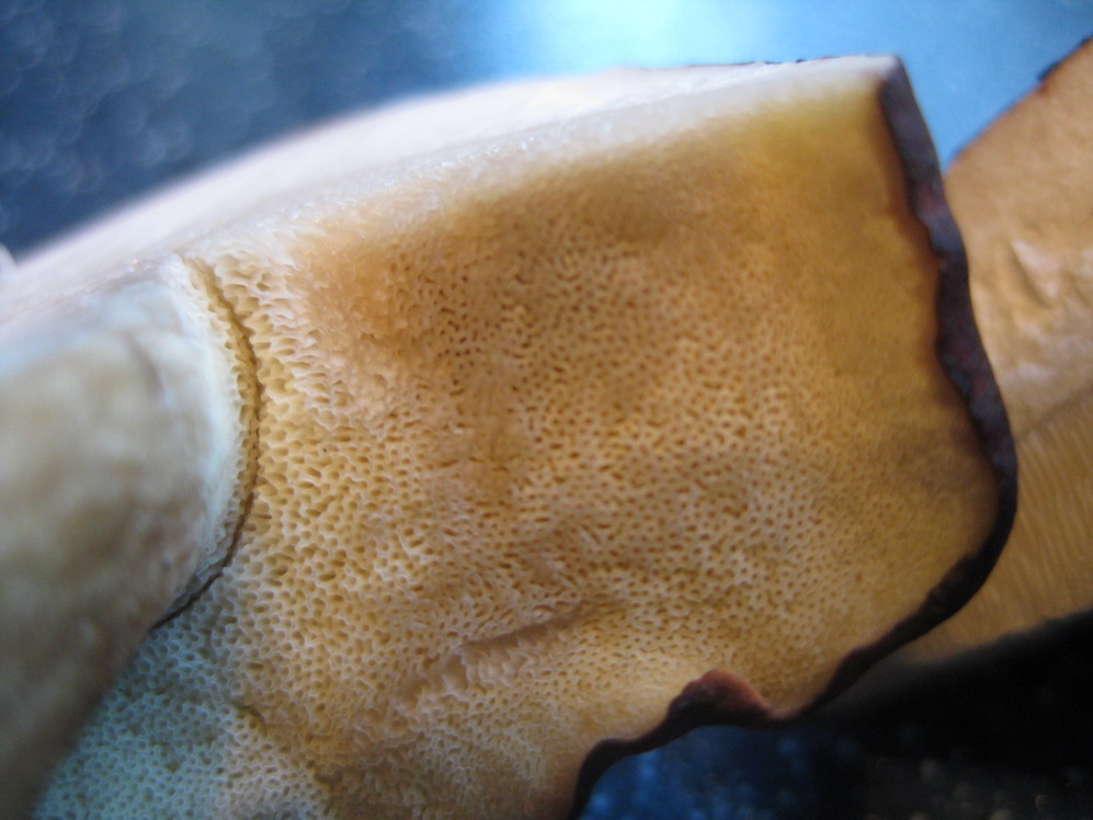 Habe mal einen Maronenröhrling mit der Makro-Einstellung fotografiert, den ich einwandfrei als "Marone" mitgenommen habe - ich meine es wären die gleichen Röhren, nur ist der Röhrling etwas älter.