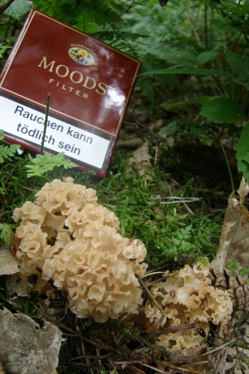 So langsam kommen auch die Glucken. Die Krause (Sparassis Crispa) war aber noch zu klein zum Mitnehmen.