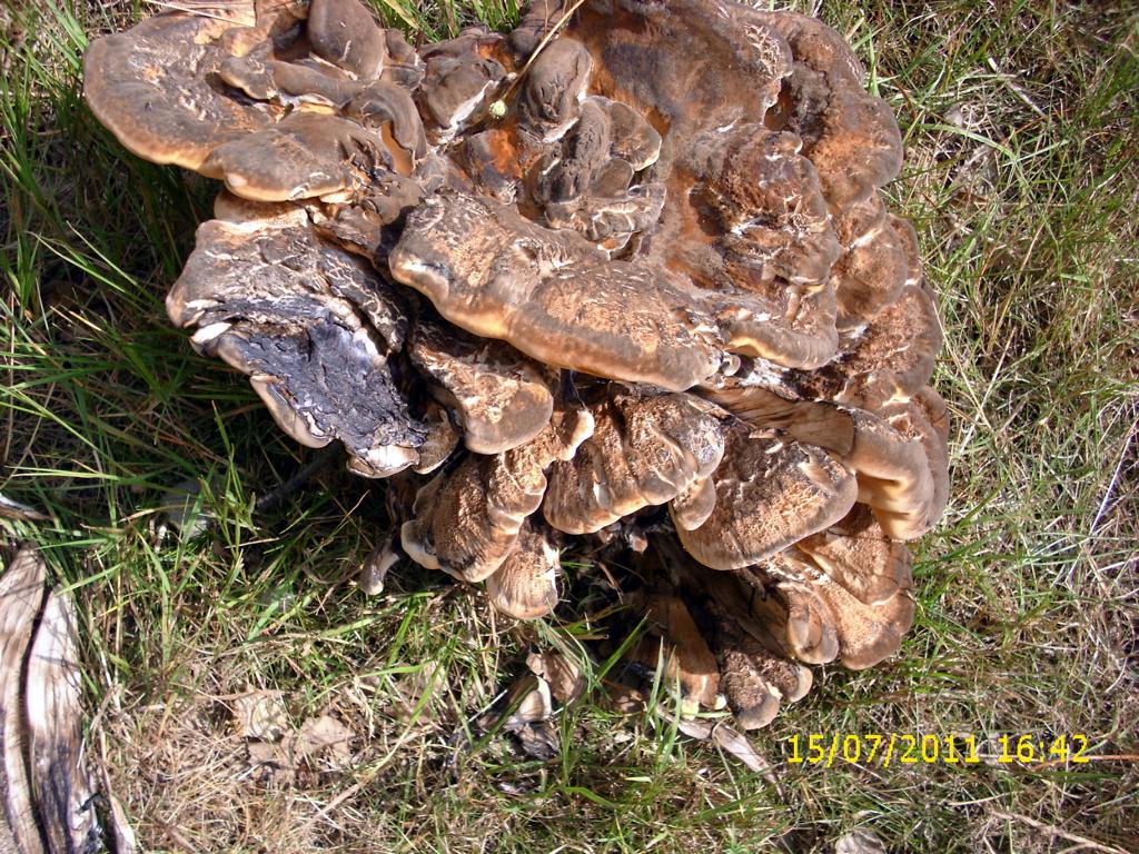 Das mit den Wurzeln kann übrigens gut hinkommen, der Pilz wächst gerne um einen Wirt herum auf dem Boden, so fanden wir 5-6 Fruchtkörper ringsherum um eine alte vom Blitz getroffene Rotbuche