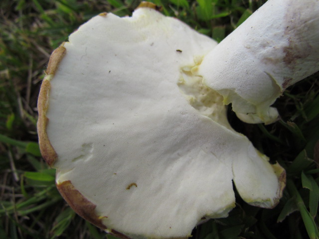 Die Hutfarbe wird am Bild gut dargestellt, die Poren sind sehr fein und werden durch meine Kamera kaum sichtbar, das weiße Fleisch gilbt gelblich nach Druck, der Geruch ist unauffällig, nach Pilz halt.