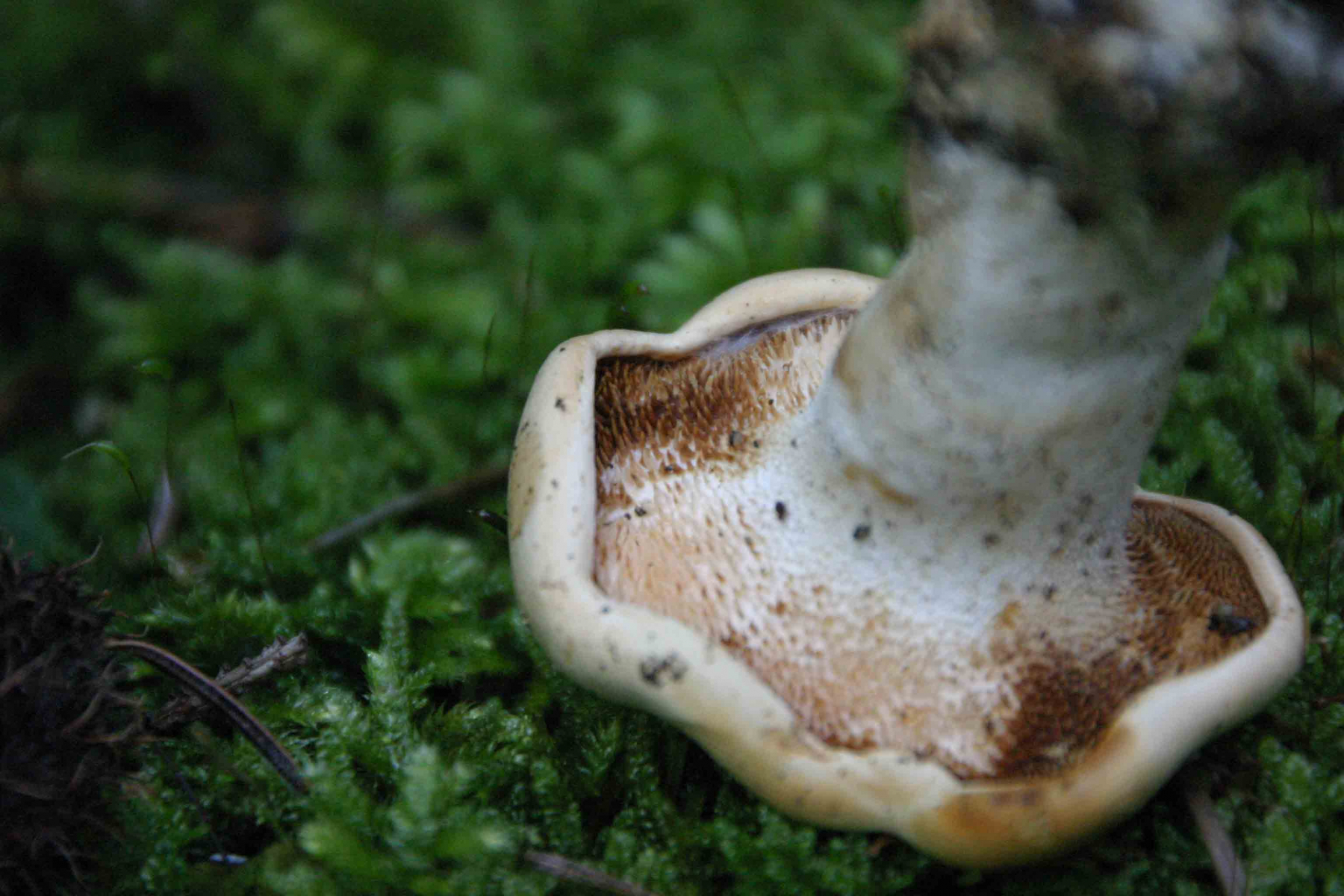 Pilz noch relativ klein ca. 6 cm hoch Hut ca 2 cm, festfleischig.