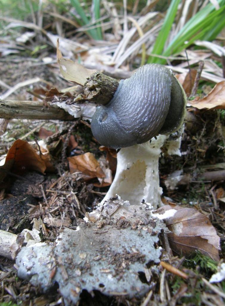 Räuber und Beute in farblicher Eintracht. Ob die Schnecke wohl wieder braun wird, wenn sie einen Steinpilz findet? Chamäleonschneck?