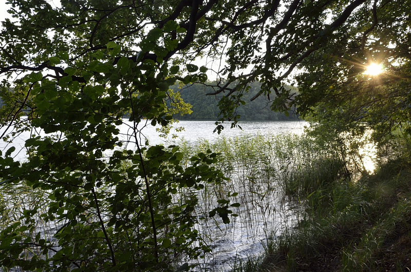 Am Montag rief mich Reinhold an und berichtete mir, das er an seiner Funstelle an einem See in Brüel, die Satans-Röhrlinge erschienen sind. Als diese Nachricht kam gab es für mich kein halten mehr, steht doch dieser legendäre Röhrling mittlerweile ganz oben auf meiner Wunschliste. Ich machte mich also auf den Weg in dieses Gebiet und nach einigen Stunden und teils haarsträubenden Situationen :shy: traf ich mich am Abend mit Reinhold . Er führte mich zu dieser Stelle an diesem wunderschönen See inmitten eines Laubmischwaldes: