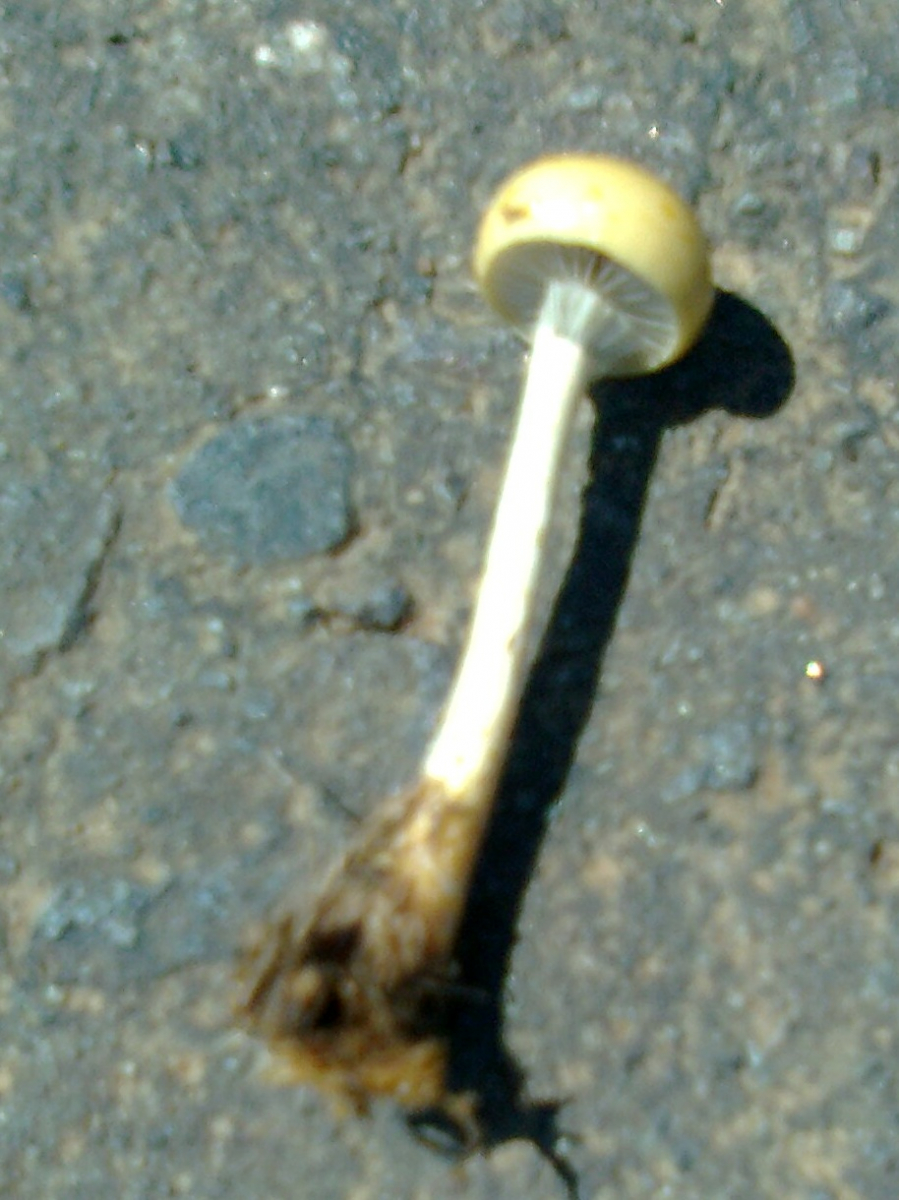 Der Hut ist 2cm breit, Gelb mit einigen kleinen dunkleren Punkten(schuppen? sind aufjedenfall abwaschbar) und sehr schleimig.