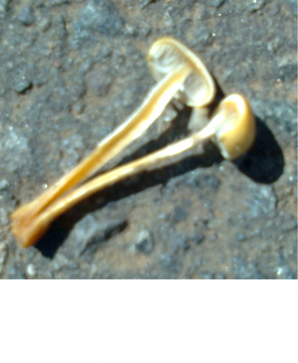 Der Hut ist 2cm breit, Gelb mit einigen kleinen dunkleren Punkten(schuppen? sind aufjedenfall abwaschbar) und sehr schleimig.