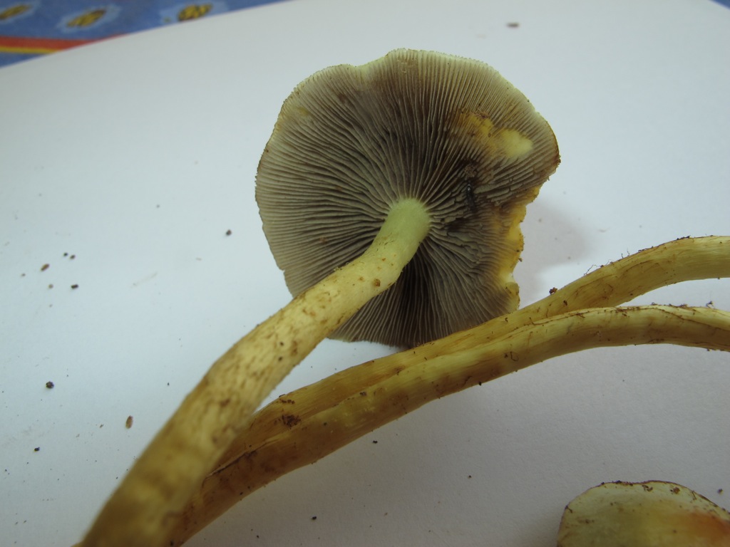 Pilz 3 ist auch ein Schwefelkopf.. erst dachte ich, ebenfalls ein Grünblättriger.. aber die Lamellen erscheinen grau genug, um auch den Rauchblättrigen Schwefelkopf nicht ausschliessen zu koennen.