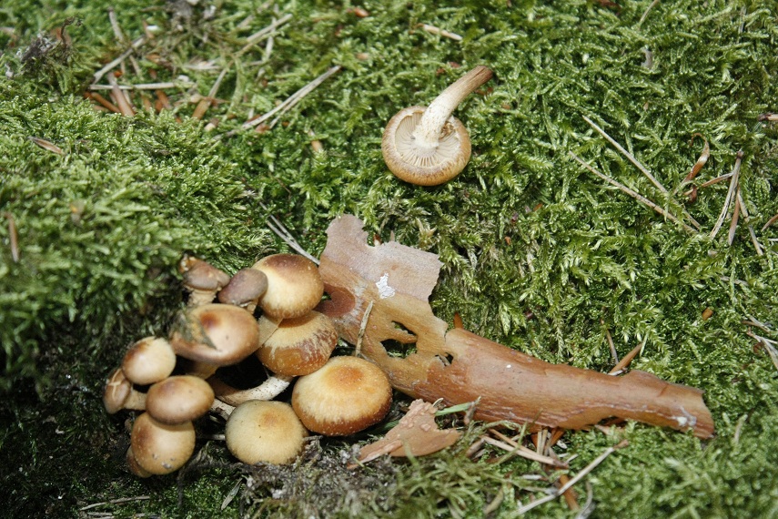 Das Bild wurde am 03.08. aufgenommen und der Pilz wuchs an einem alten mit Moos überwachsenen Baumstamm.