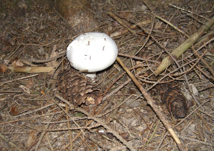 Er wuchs unter Fichten am Waldrand nahe einer Wiese.
