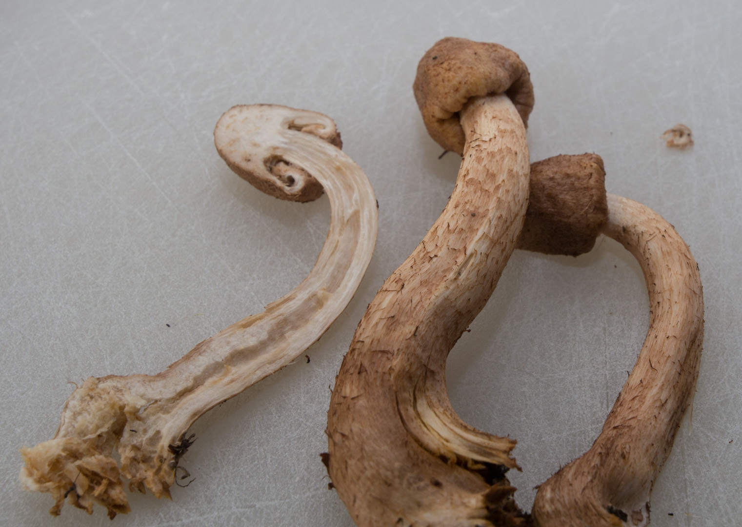 • Aber für Nummer 2 hat niemand eine Idee? Ich hätte wegen dem dicken Stiel und der deutlich Färbung des Huts darauf gehofft, dass zumindest eine Richtung klar würde. Lamellen hat er übrigens. [hr]