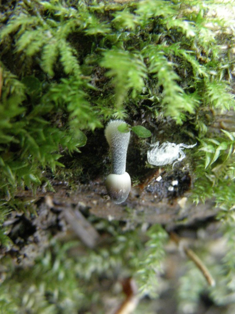 7) Winzling des Tages: Ein etwa 2 mm langer Phallus; gefunden auf der Unterseite eines Buchenastes. Ein Schleimpilz? Wohl eher nicht...