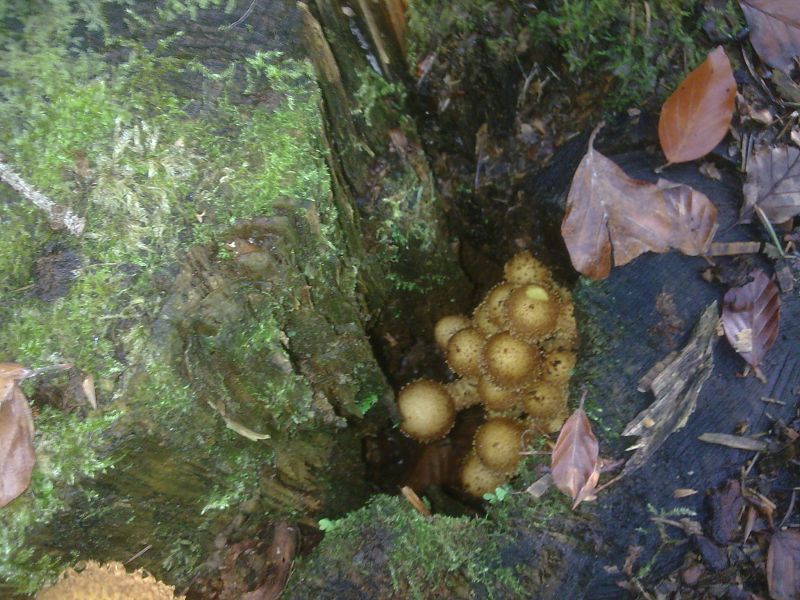 Und genaus so kam es dann. Ich habe diese noch nie gefunden und ich habe versäumt die Art des Totholzes festzustellen an dem sie wuchsen. Es waren zwei ineinander verwachsene Bäume, stark vermoost, in einem Mischwald. Relativ viel Fichte und Lärche neben Buche und anderem Laubholz, Laubholz dominierend auf Jurakalkstein.
