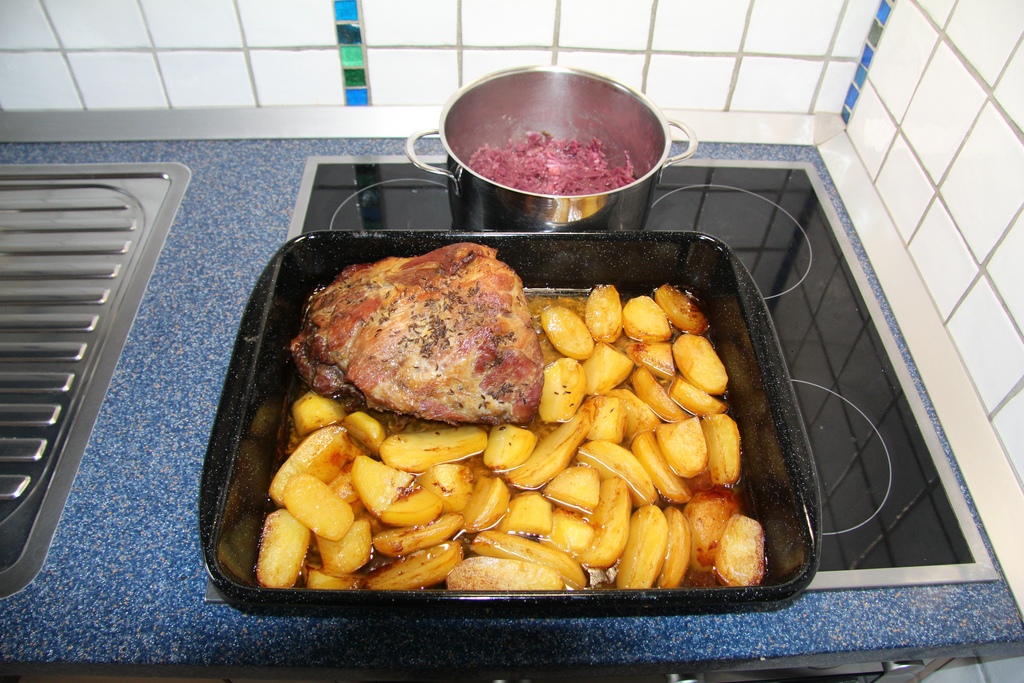 Die Beilage, "Festtagsrotkraut mir Maroni", fix und fertig gekauft, hätte ich sofort gegen deine Beilage getauscht.