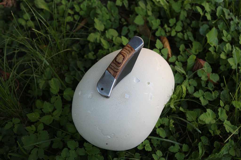 das war der letzte von vier Riesenbovisten, die Martina im Garten ihres Vaters gefunden hat. Bei dreien waren die Würmer schneller, der letzte war markellos.