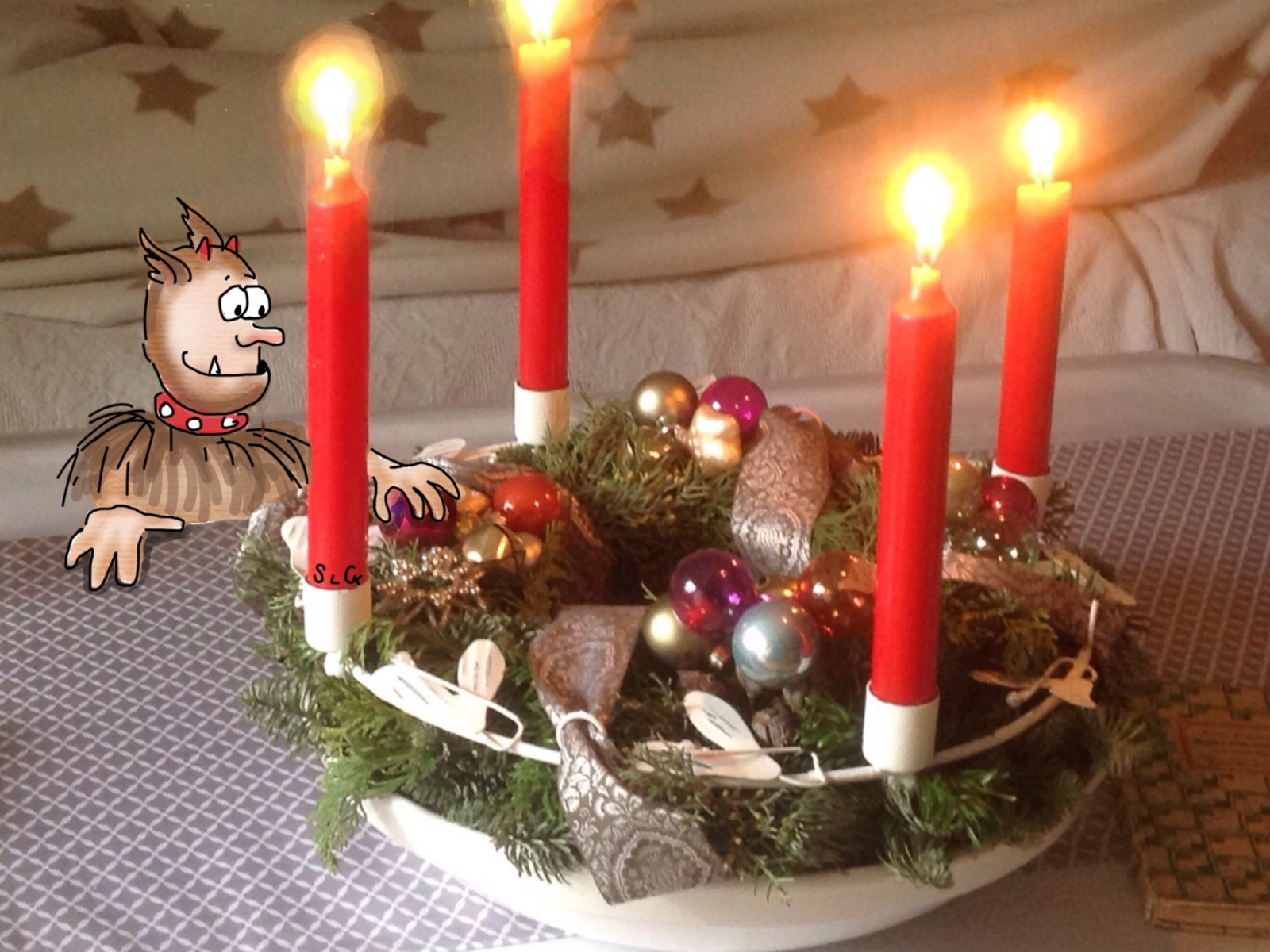 im Kerzenschein mit seinen Lieben die erste Kerze anzuzünden hat Tradition. Bei der zweiten ist das Interesse schon lahmer, bei den Zettelchen angelangt, die es flugs noch zu schreiben gilt. Schau ma amol, ob die Milch genießbar und die Keks' dem Christkindl usw.