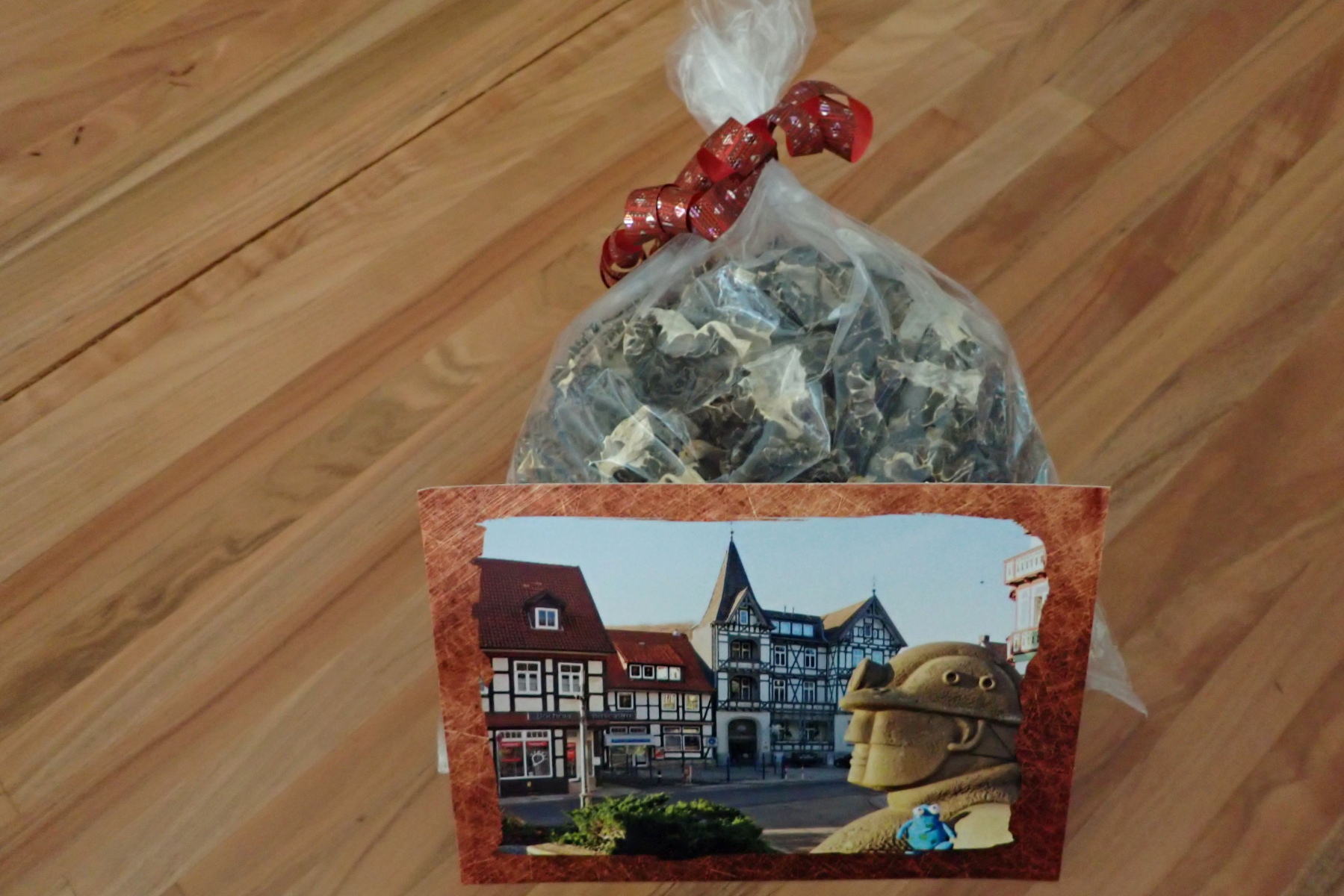 heraus fallen ein Beutel getrocknete Morcheln und eine ganz liebe Karte von Murph und den HoBis!