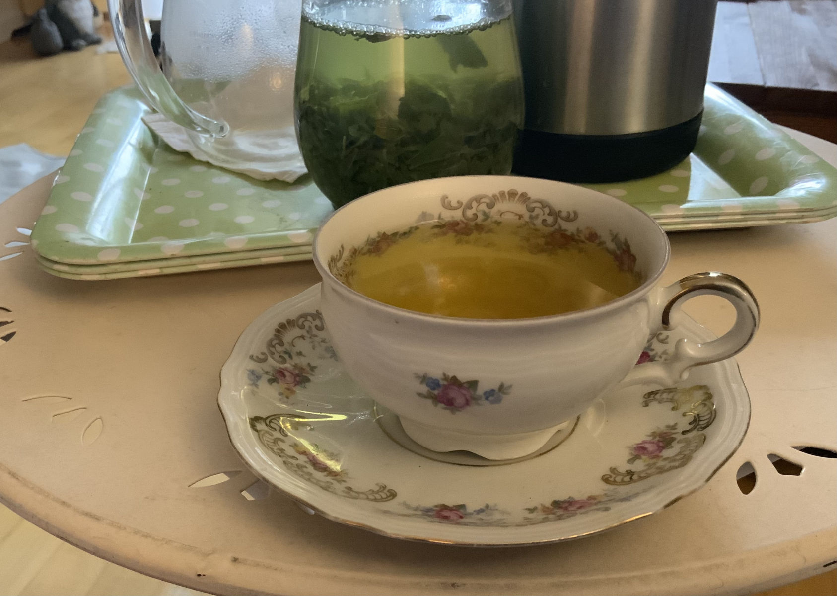 Jemand Grünen Tee, Schwarzen Tee, Kakao oder Kaffee? Ein Glas Milch vielleicht?