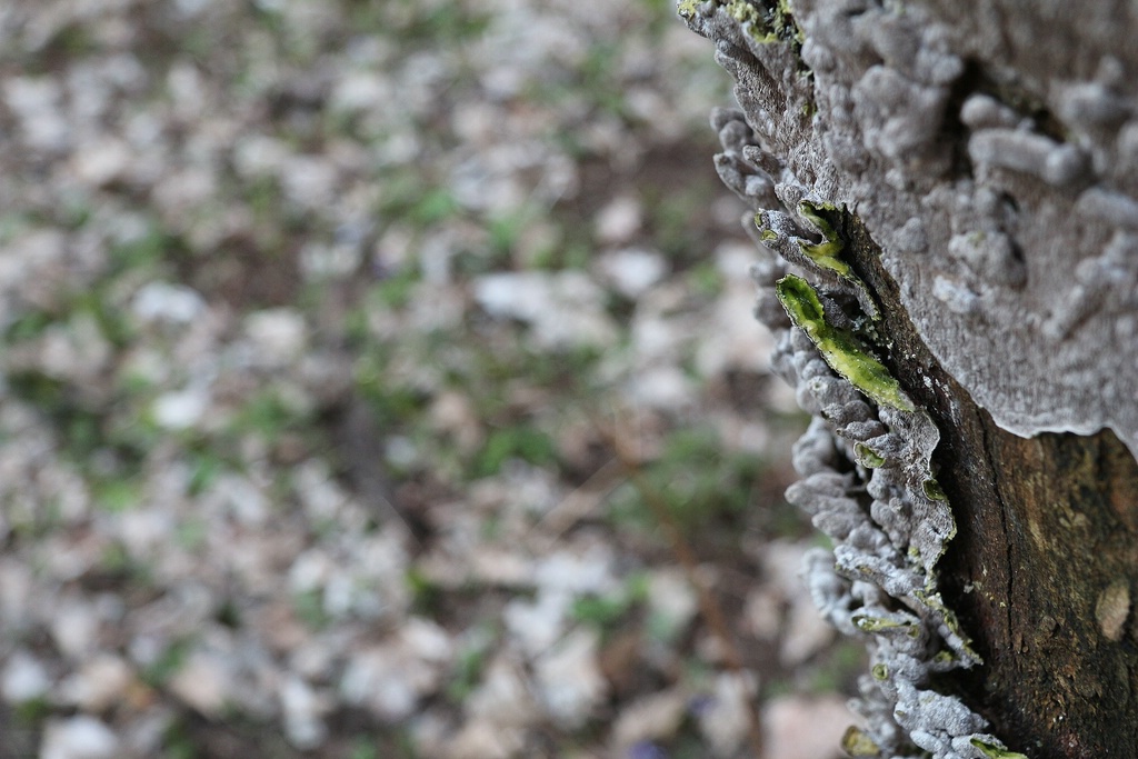 Wie gerne ich die Morcheln auch gewinnen würde, mir fällt der Pilz nicht ein... bin auf der Suche über Braunfäuletramete, Vielgestaltiger Schillerporling, oben genannte Buckeltramete bis hin zum Zystidenrindenpilz gestolpert. Aber so recht will mir keiner gefallen. -
