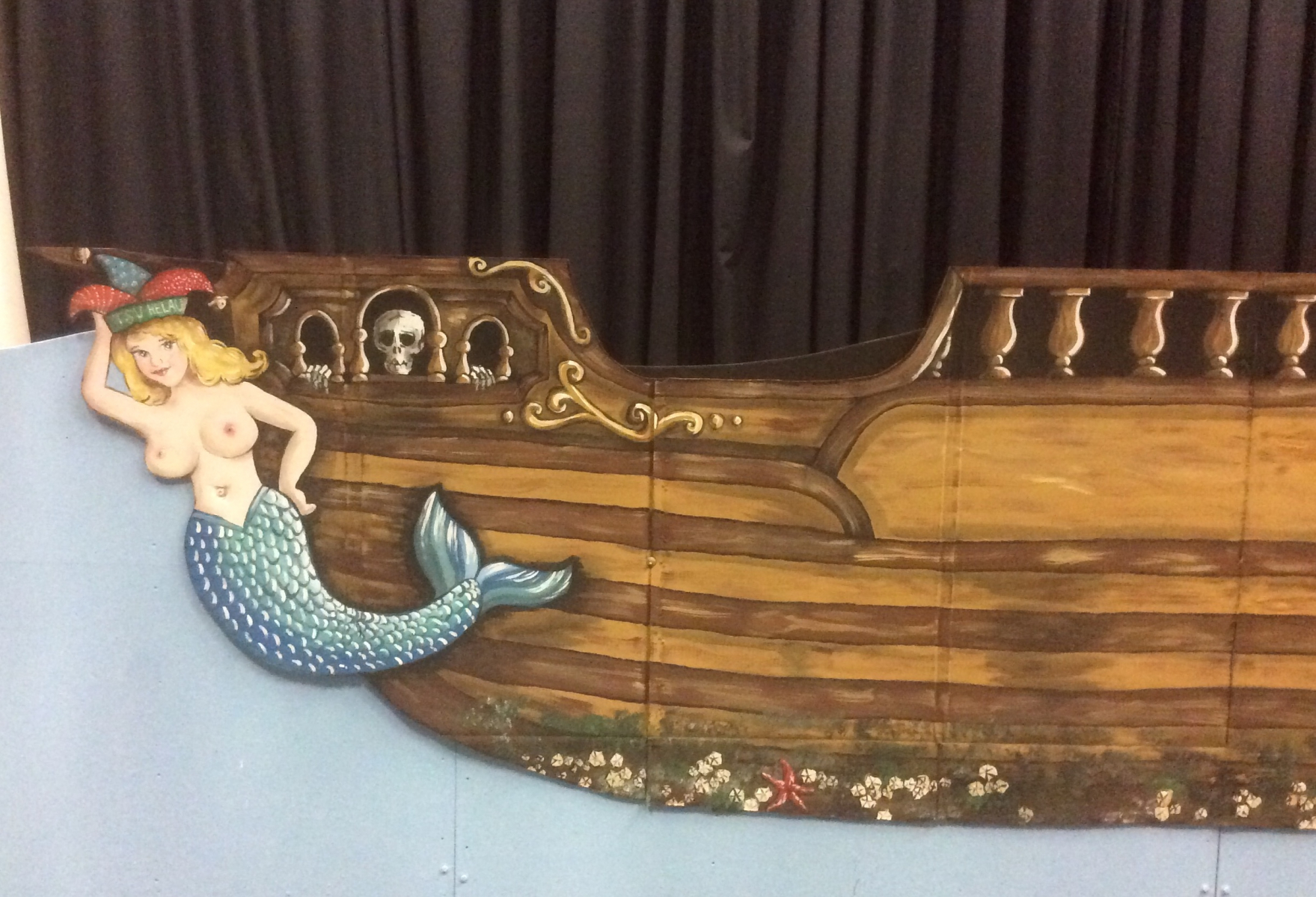 die Flosse ist künstlich...so 'ne Galionsfigur ist doch aus Holz geschnitzt! Aber wenn ich die der armen Meerjungfrau abnehme, sieht sie ja aus wie'n Wattwurm...