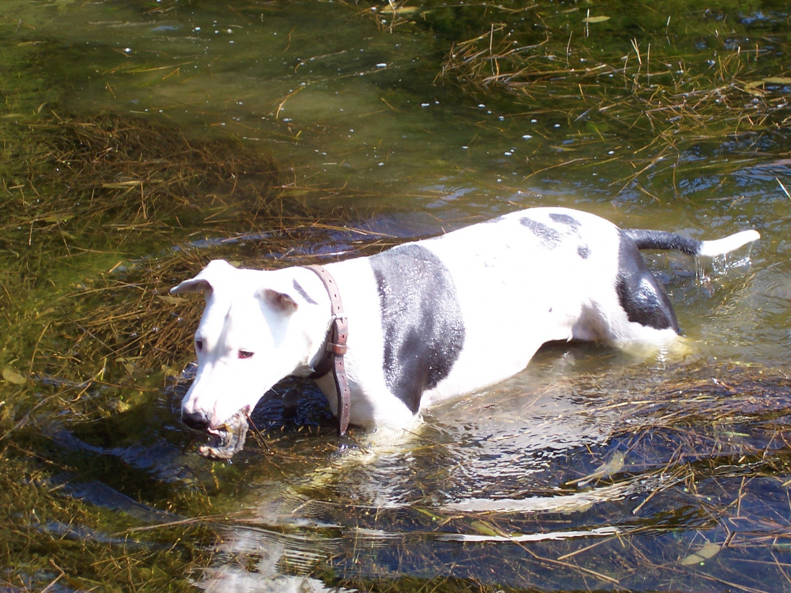 Duplo apportiert ganz vorsichtig eine lebende Maus oder Ratte, die sie im Teich aufgefischt hat.