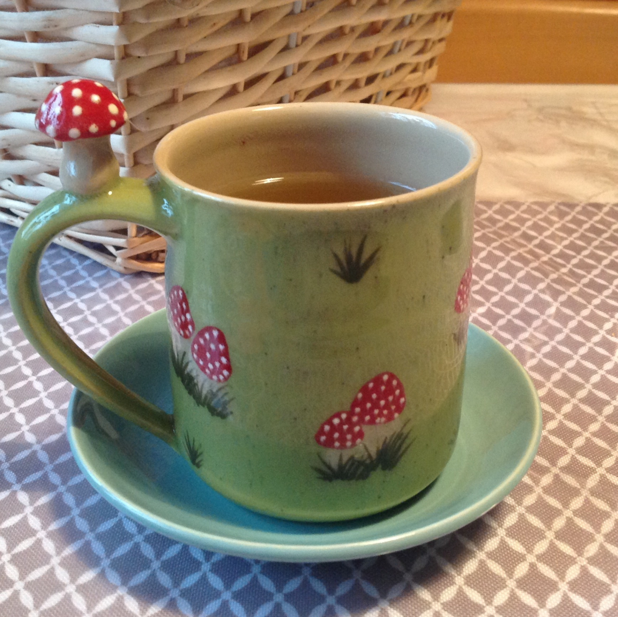 Heute morgen habe ich meinen Tee aus meiner futschneuen Pilztasse getrunken, danke, Schwester Kagi!
