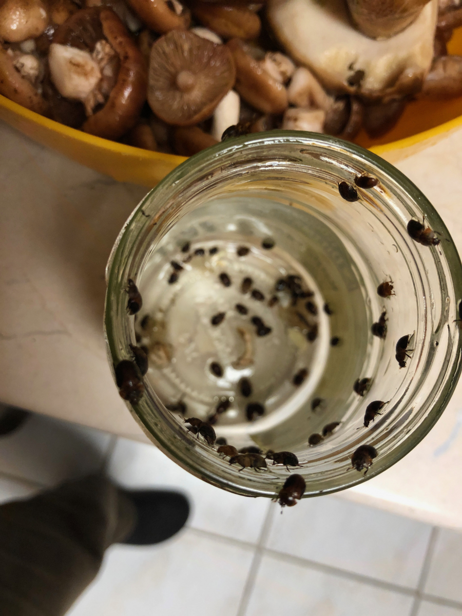Apropos Schlauch, da war doch mal was mit Wein und Schläuchen. Egal. Heute trinke ich ein ein Hefe auf den erwachenden Pilzwald. Verrückt. Gestern war noch gar nichts und heute überschlägt sich alles. Zig Arten, die es die ganze Zeit nicht gab. Und eine Käferinvasion im Hallimasch, die ich alle in der Küche hatte und dann im Glas. Aber ich hab sie wieder freigelassen. Das waren wohl keine Holzschädlinge nur Saprokerfe.