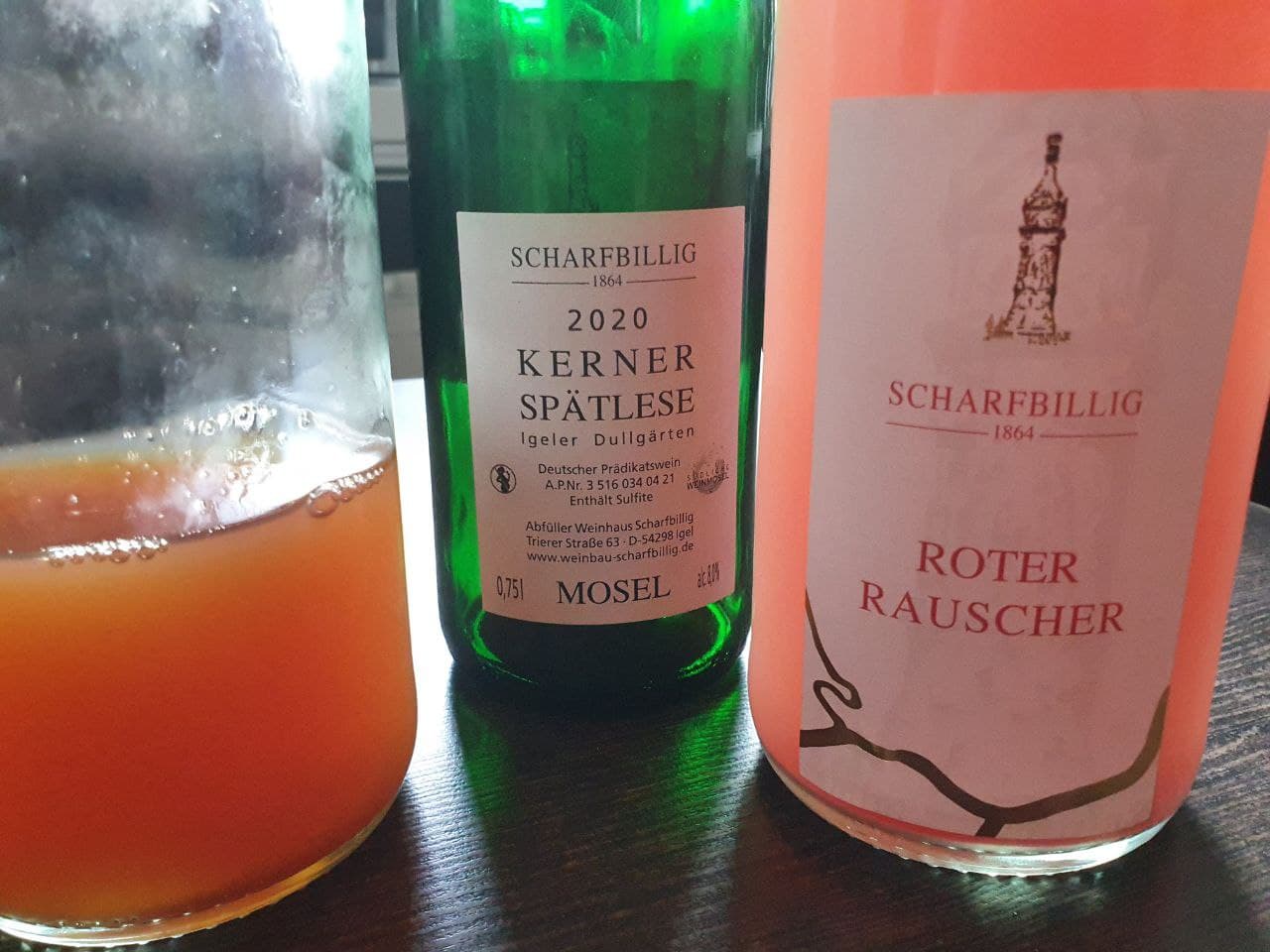 die Weinlese ist im Moseltal in vollem Gange .... und meine beiden Studenten auch voll im Hang-Einsatz... da fällt dann auch mal was ab... auch wenn es vom letzten Jahr ist... stell ich mal was hin. Roter Rauscher und andere Leckereien..... Federweißer und Zwiebelkuchen hatte ich Euch vorenthalten, sorry...