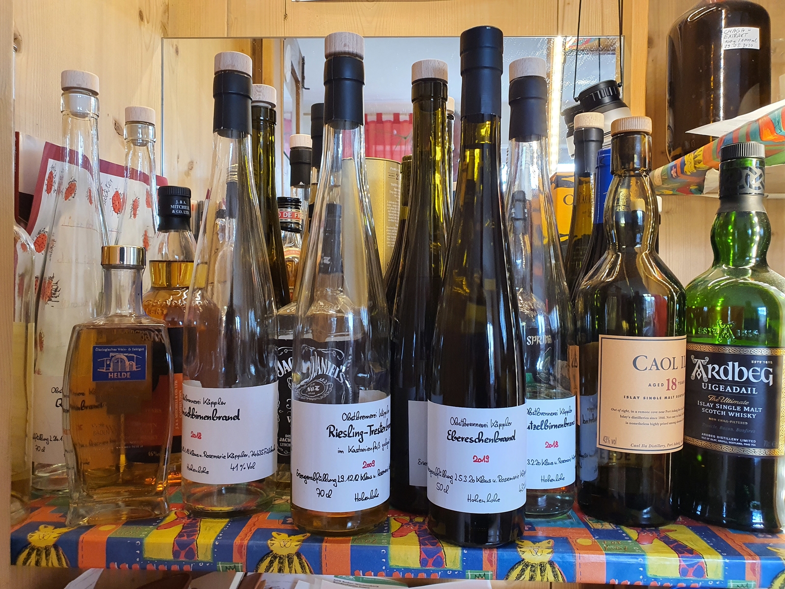 Nun, da es nicht mehr früh ist, eher (zu?) spät, entscheide ich mich für den 43%igen Ebereschenbrand der Obstbrennerei Käppler.