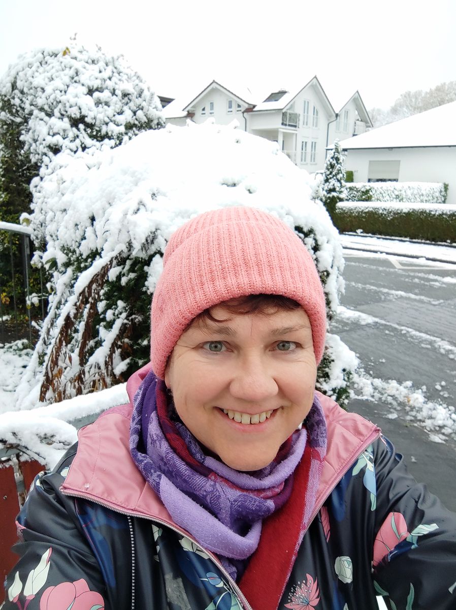 Da räkelte ich mich im Morgengrauen nichtsahnend (Wettervorhersage verpaßt) herum, wollte gerade mein Buch aufschlagen...dann...???...draußen so komisches Licht? SCHNEE! Und zack, war ich munter und auf!