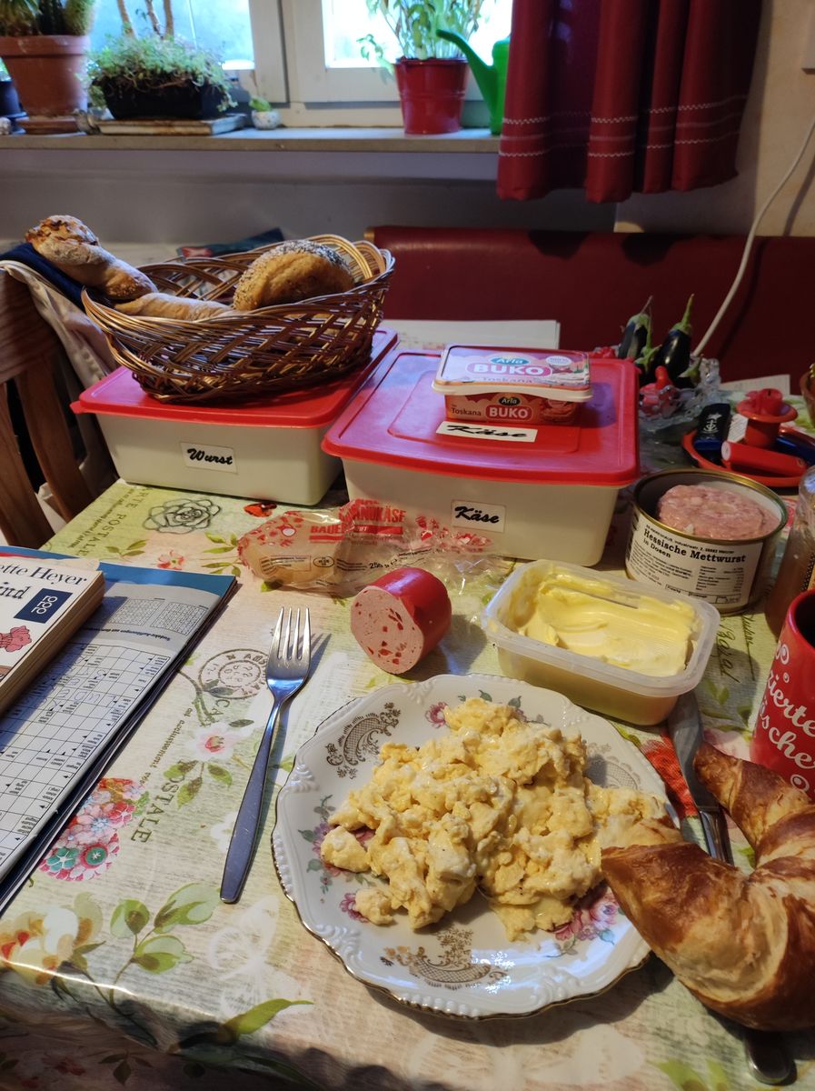 So, jetzt mach ich mir n schönen heißen Kaffee und n Rührei...die frischen Brötchen hab ich gleich nach der Schneeschipp-Aktion geholt. Setzt euch zu mir an den Frühstückstisch! ==Pilz27