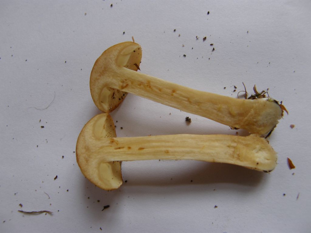 Hatte ich mir auch zwischendurch überlegt, scheidet aber aus. Bei Hygrophorus Puderinus (bei allen Schnecklingen?) müsste das Sporenpulver auch weiß sein. Und die Größe der Fruchtkörper passt (laut Literatur) auch nicht.
