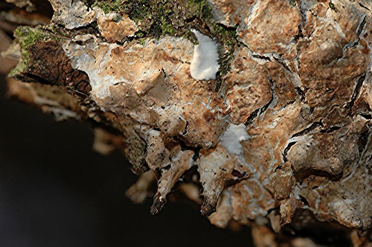 hier erst einmal ein Photo vom 22.02.2008. Wie man sieht, tut sich da nicht viel. Aber vielleicht hilft das zweite Bild weiter. Ist da davon auszugehen, daß es sich um denselben Pilz handelt? Ich meine natürlich nicht die weißen Strukturen sondern die braunen.