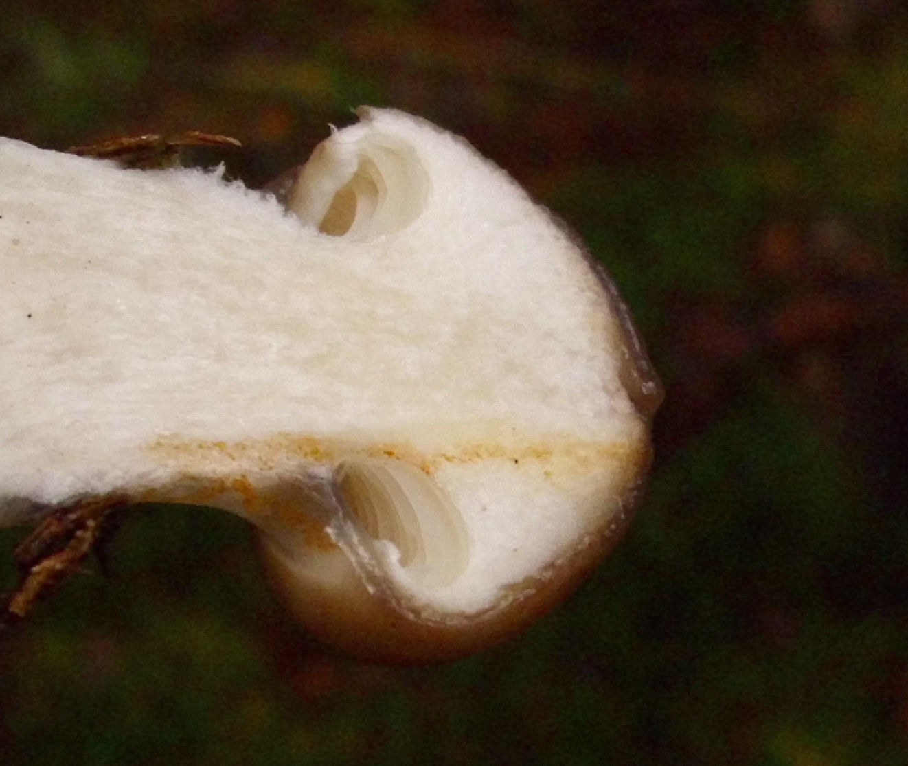 die lamellen beim älteren exemplar liefen herab und waren grubig angewachsen...dachte ich, aber bin plötzlich nicht mehr sicher.