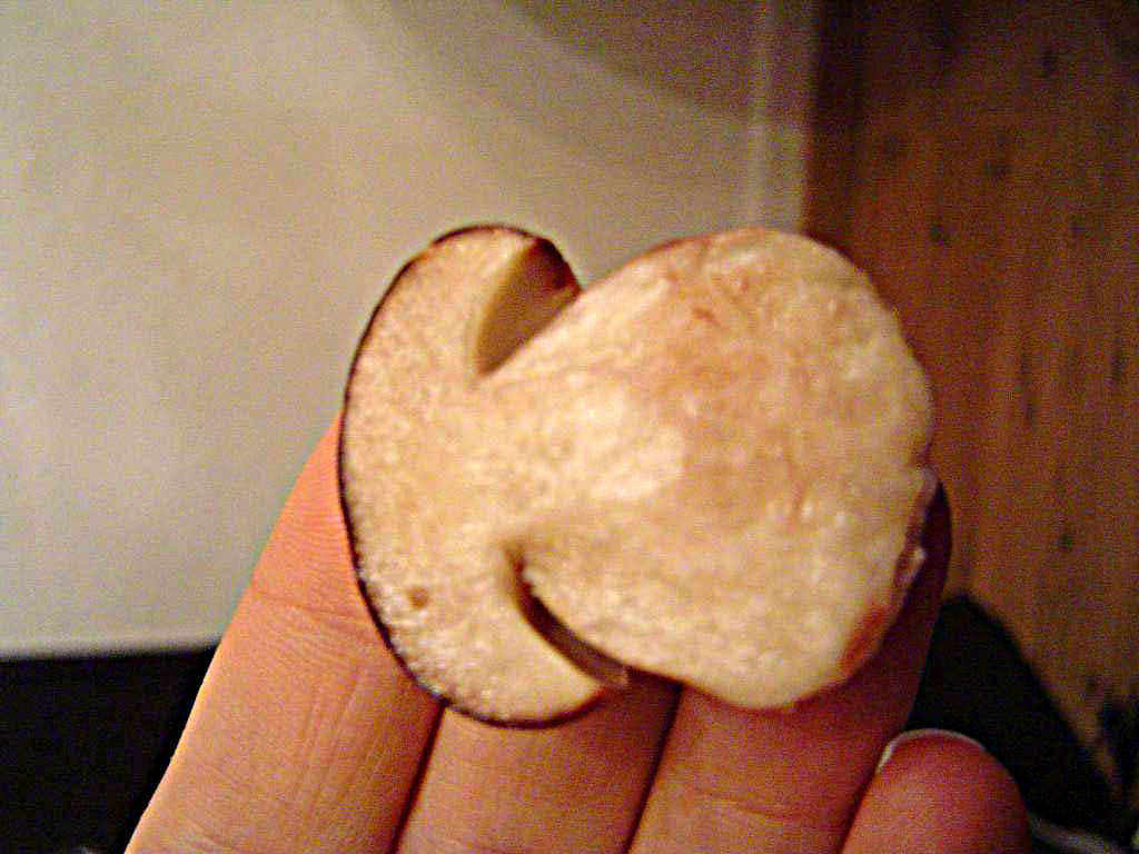 Das war am Hut in der Mitte...war aber gleich wieder schön weiß! Habe den Pilz auch unter laufendem Wasser zuvor abgespült!