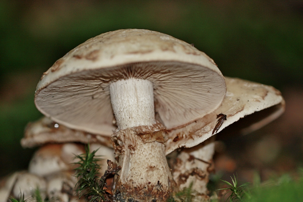 --> "bestrumpft" mit Ringzone, Hutoberseite schleimig, weißliche Sporenfarbe (--> Vergl. die Sporenfarbe von Schleierlingen bzw. Cortinarien!).