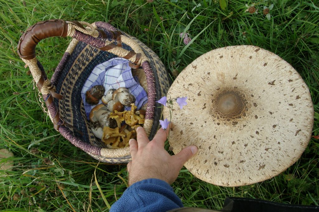 Und das ist der Grund, warum es diesmal keine Photostrecke von mir gibt, sondern nur dieses eine Bild. Denn - nachdem ich mich von dem Schock erholt hatte - bin ich flugs losgerannt, hab' an zwei Steinpilzstellen kurz die fünf Schönsten mitgenommen, beim Laufen noch ein paar Pfifferlinge und Hexen gepflückt, und dann ab über die Wiesen.