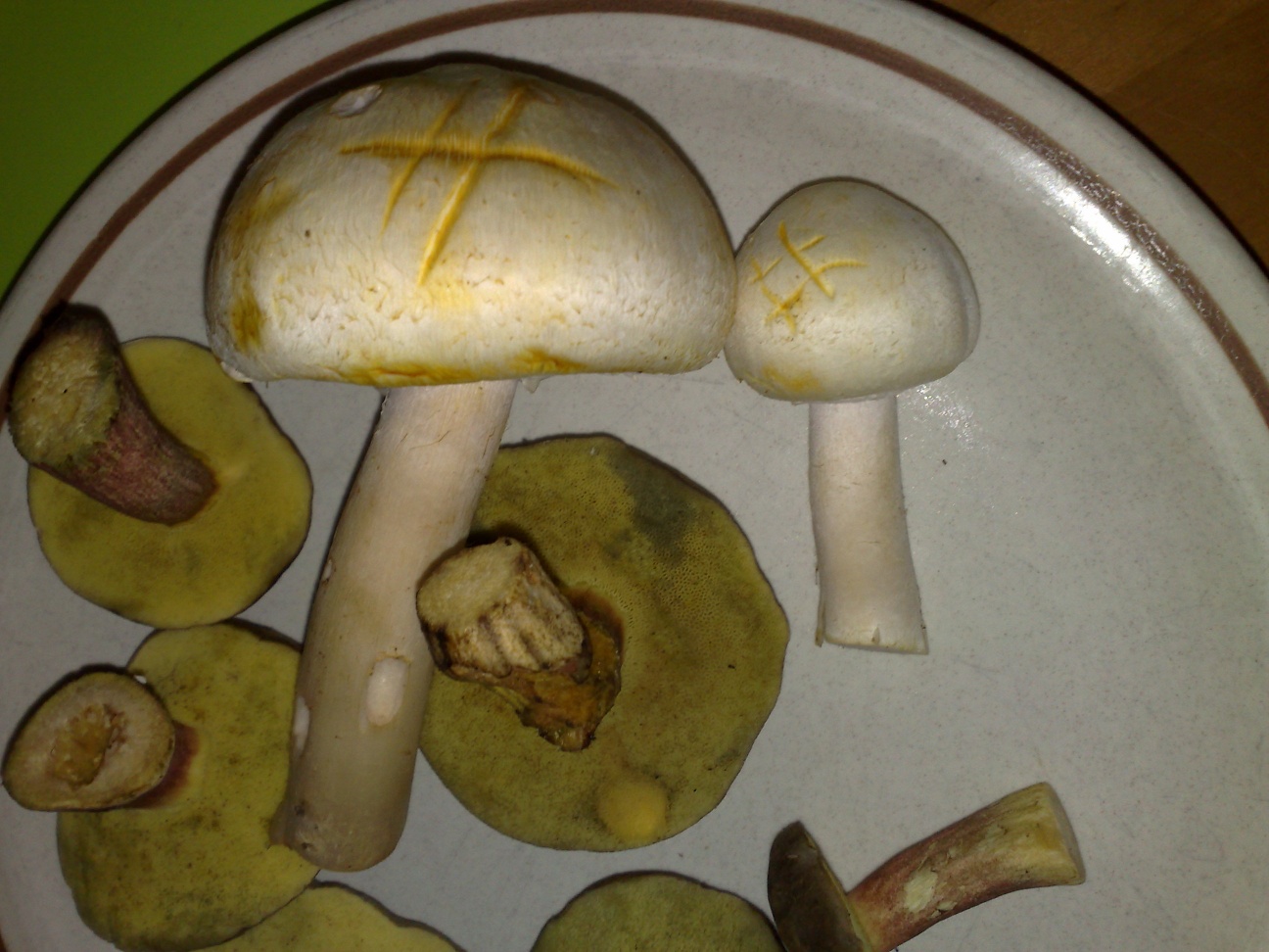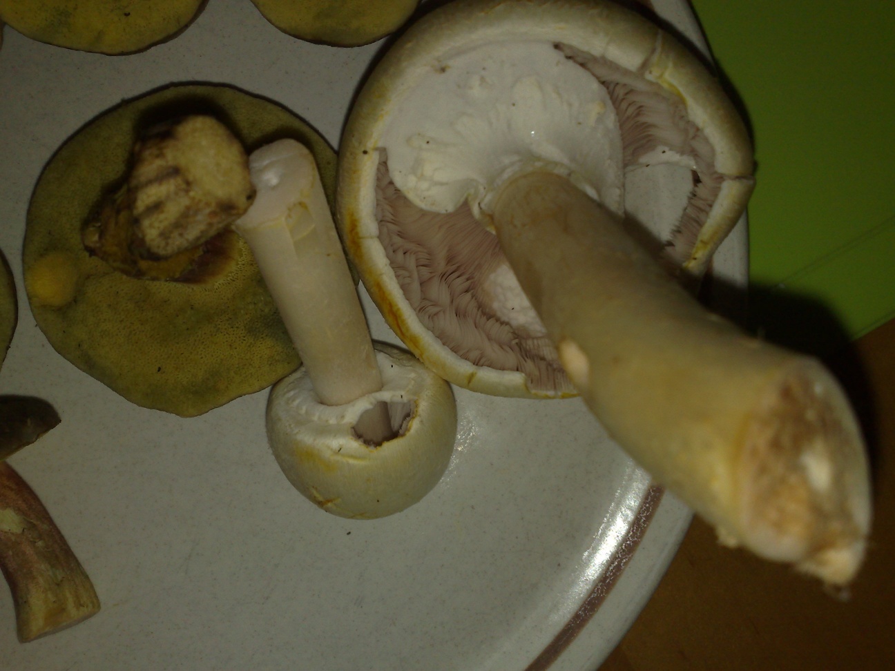 5. Die Egerlinge kommen auch aus einem Mischwald, und die Gelbfärbung irritiert mich, ich dachte dass nur der Carbolegerling gelb färbt, aber dieser Kammerad riecht schwach nach Anis.
