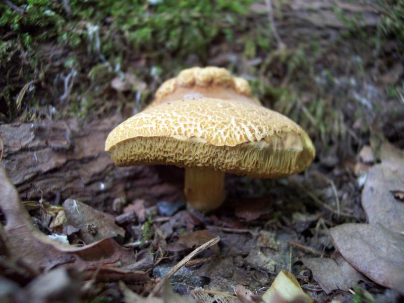 Diese Stelle kenne ich sehr gut, da ich sie seit über 4 Jahren, teils wöchentlich beobachte. Ich habe dort 2010 einen gelblichen Pilz gefunden, der sich allerdings nach einer Anfrage im pilzepilze-Forum als Ziegenlippe (X. subtomentosus) herausgestellt hat.