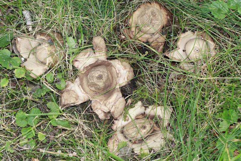 der Halskrausen-Erdstern war gerade in der Diskussion, hier ein Paar Exemplare aus unserem Garten, dort wächst der Pilz regelmäßig jedes Jahr.