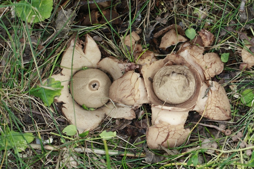 der Halskrausen-Erdstern war gerade in der Diskussion, hier ein Paar Exemplare aus unserem Garten, dort wächst der Pilz regelmäßig jedes Jahr.