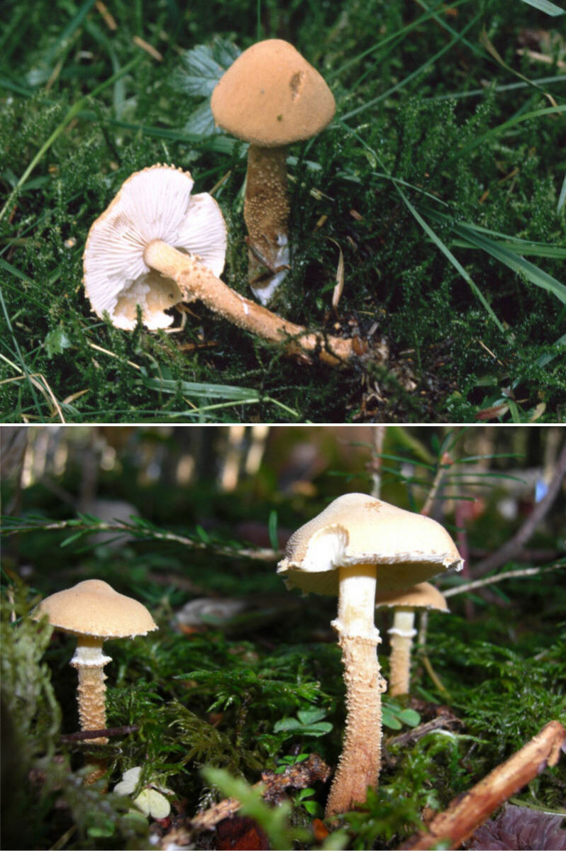 Für C. ambrosii wird es bei Funga Nordica noch etwas komplizierter: sie schreiben die Art als Varietät unter C. granulosa, als jung weiß und später zinnoberfarben(!). Ob hier noch jemand weiß, was jetzt C. ambrosii oder C. carcharias ist, sei mal dahingestellt.Ludwigs Pilzkompendium zeigt C. carcharias, wie ich ihn noch nirgends anders gesehen habe, weder in natura noch in Bildern aus anderer Literatur. Insgesamt aber durchaus vergleichbar mit meinem Foto, da die Pilze sowohl auf dem Hut als auch von der Stielbasis herauf nicht ganz weiß waren, sondern Grautöne aufwiesen. Ludwig schreibt aber auch von "meist mit dunklerer Papille", was auf meinem Foto deutlich zu sehen ist, auf den Fotos von Karinsche aber nicht rauskommt, selbst bei der Fotoqualität nicht. Der Hut sieht sogar eher gleichmäßig orangebraun aus. Genau wie Funga Nordica schreibt Ludwig auch etwas über C. arctica, mit ähnlichem Stielring wie bei C. carcharias, aber mit anderen Farben und einer wohl eher nördlich-borealen Verbreitung.