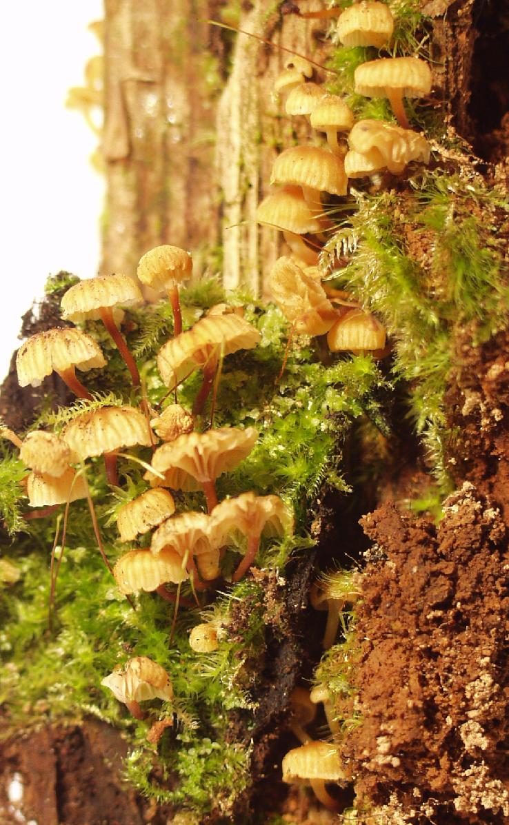 Farblich sinds ja irgendwie kleine Flammulinas (Samtfußrüblinge). Diese Glöckchennabelinge sehen echt zum anbeissen aus, nur sobald man sie anlangt, verabschieden sie sich und zerbrechen.