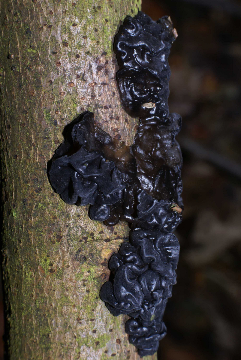 Foto 4 und 5: "Exidia glandulosa" -Becherfoermiger Druesling oder "Exidia plana var. plana" - Teerflecken-Druesling ??