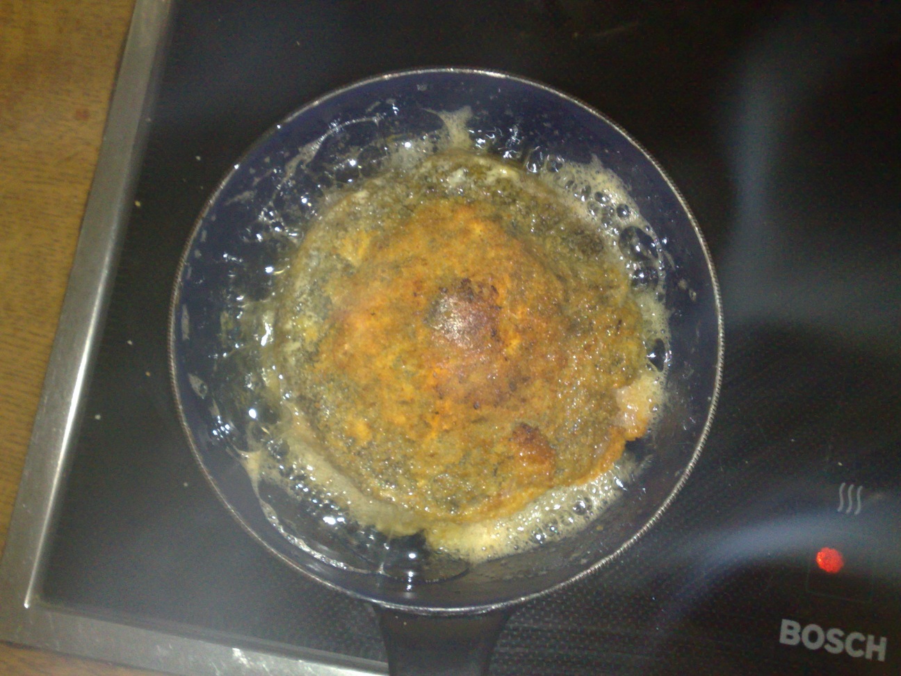 8. panieren ( Scheiß Bild)9. jeweils 3.5 Min beidseitig in Butter anbraten